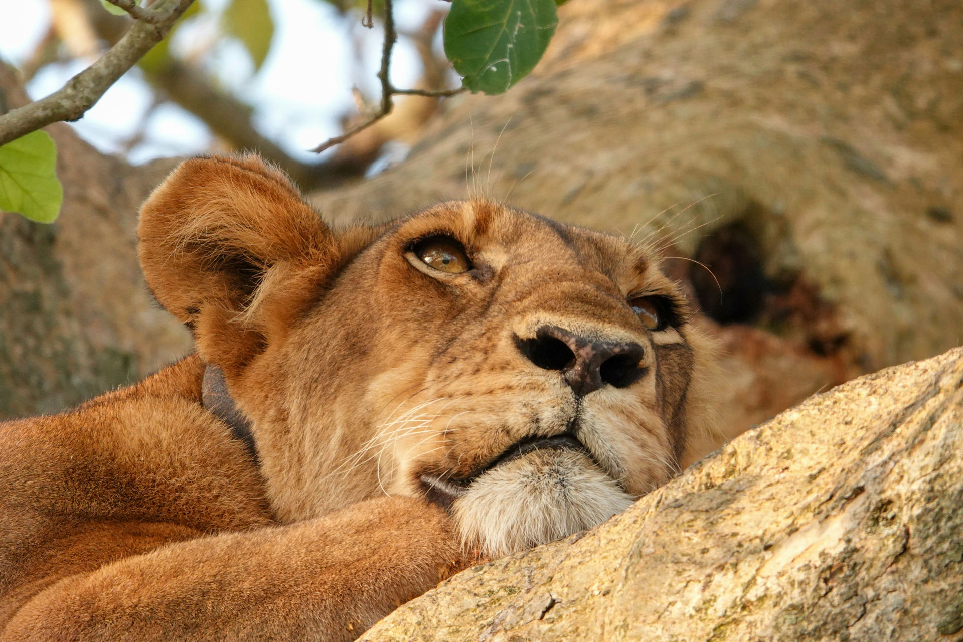 One of the park’s biggest attractions is its famous tree-climbing lions, found in the Ishasha sector. Visitors can also enjoy boat cruises along the Kazinga Channel, where wildlife gathers along the water.